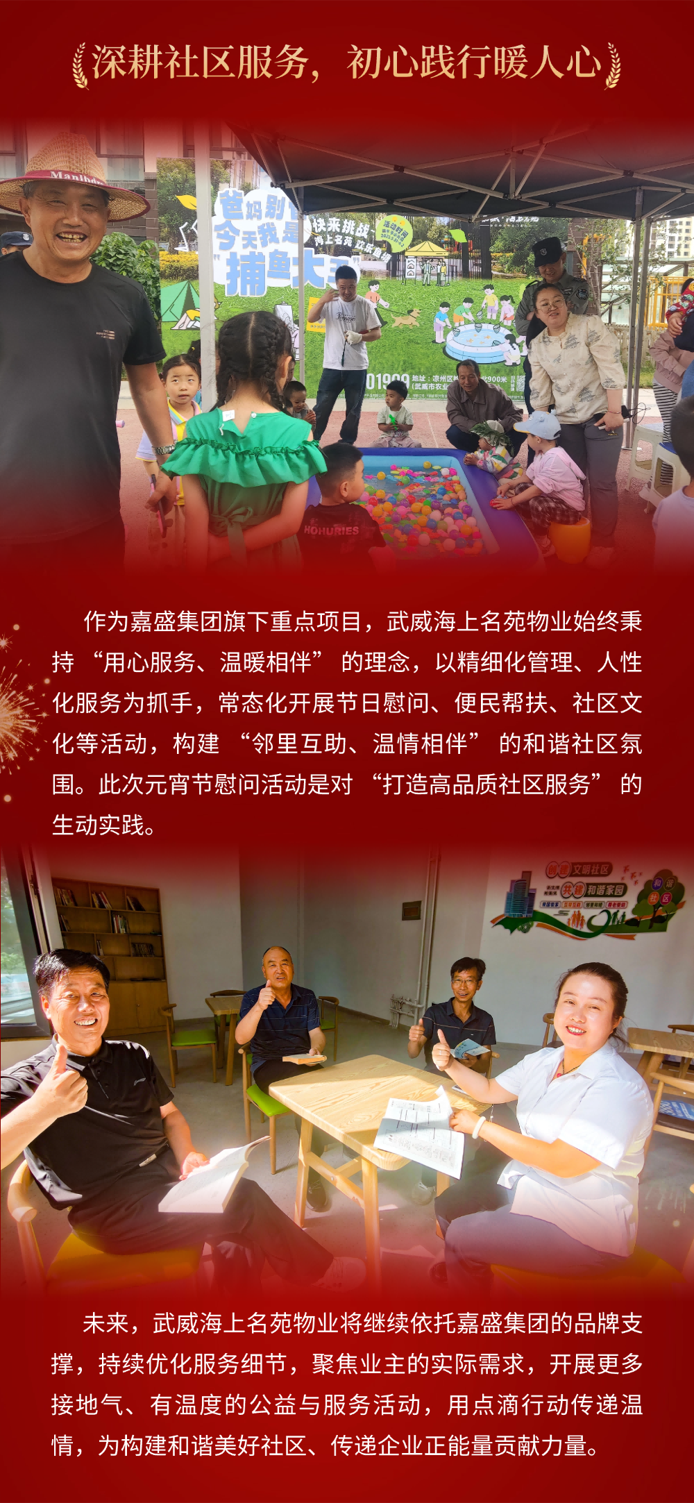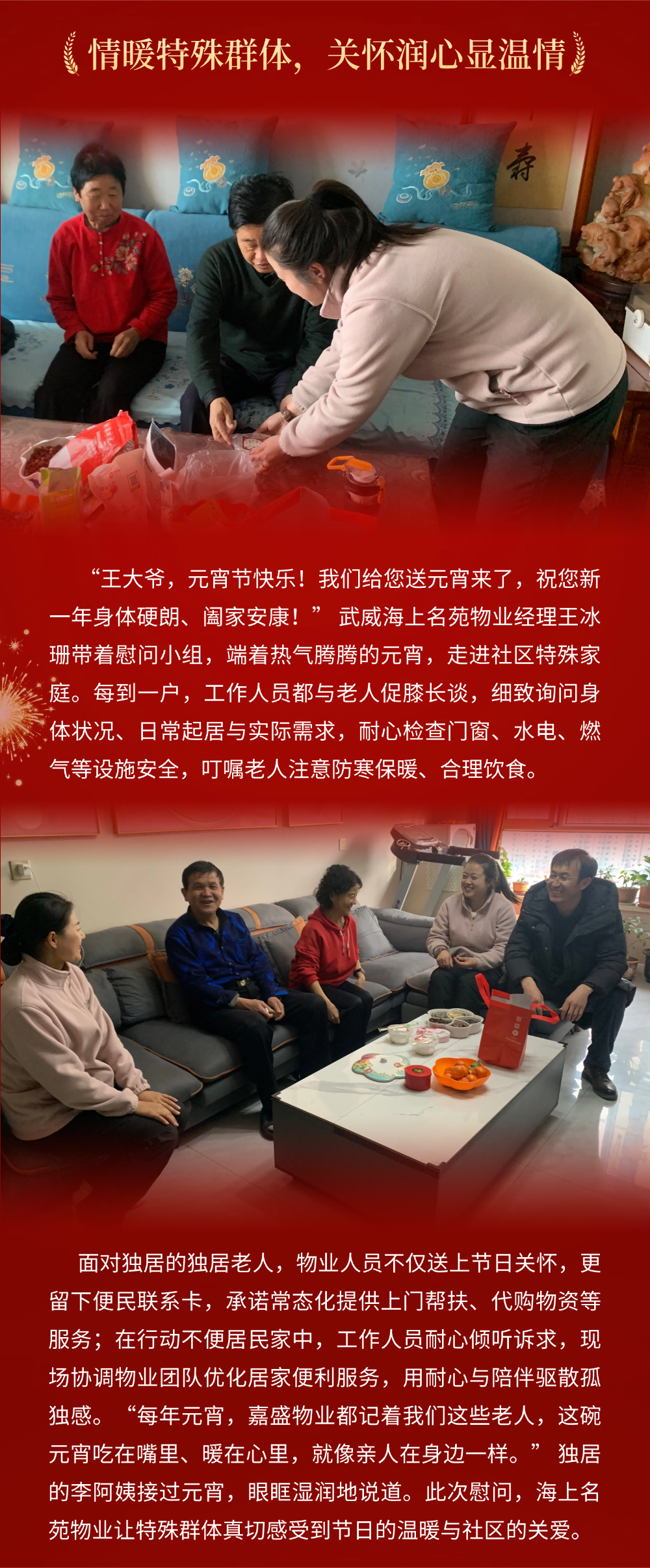 元宵暖人心 嘉盛送温情 —— 武威海上名苑物业开展元宵节慰问活动